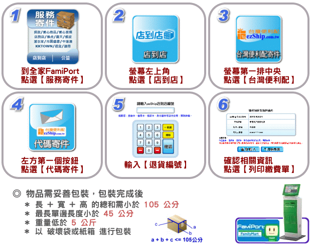 聯繫Formise芙覓施客服,領取退貨編號至「全家FamiPort機台」操作,寄件時店員不會收取費用。